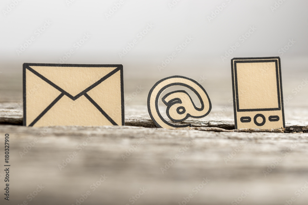 Small At sign, mail and phone symbols