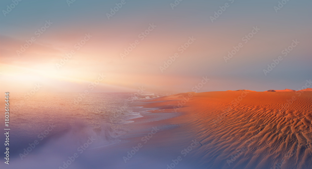 Namib desert with Atlantic ocean meets near Skeleton coast - Namibia, South Africa