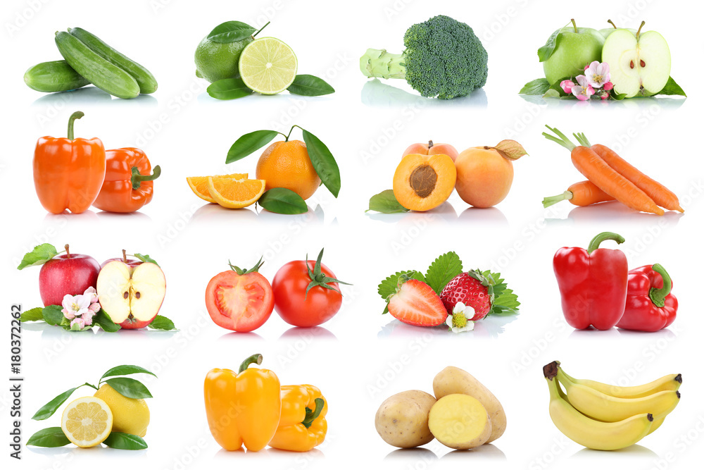 Früchte Obst und Gemüse Apfel Tomaten Orange Zitrone Karotten Farben Sammlung Freisteller freigestellt isoliert