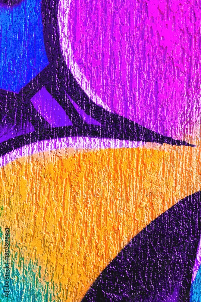 Vibrant street art patterns in neon pink, purple, yellow. 90s urban aesthetic, textured surfaces, bold outlines. Graffiti, murals, city visuals, modern 2000s, Y2K creative backdrop, summer events.
