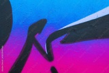 Abstract graffiti art with bold black lines over a dynamic blue and pink gradient background. Vibrant 90s, urban street style, modern design. Posters, digital art, creative banner.