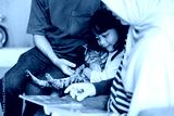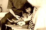 Young Girl Cuddles Pet Cat While Family Reads Book