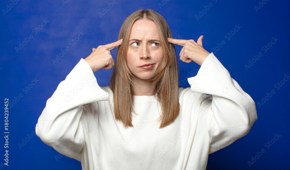 feeling confused or doubting, concentrating on an idea, looking to copy space on side