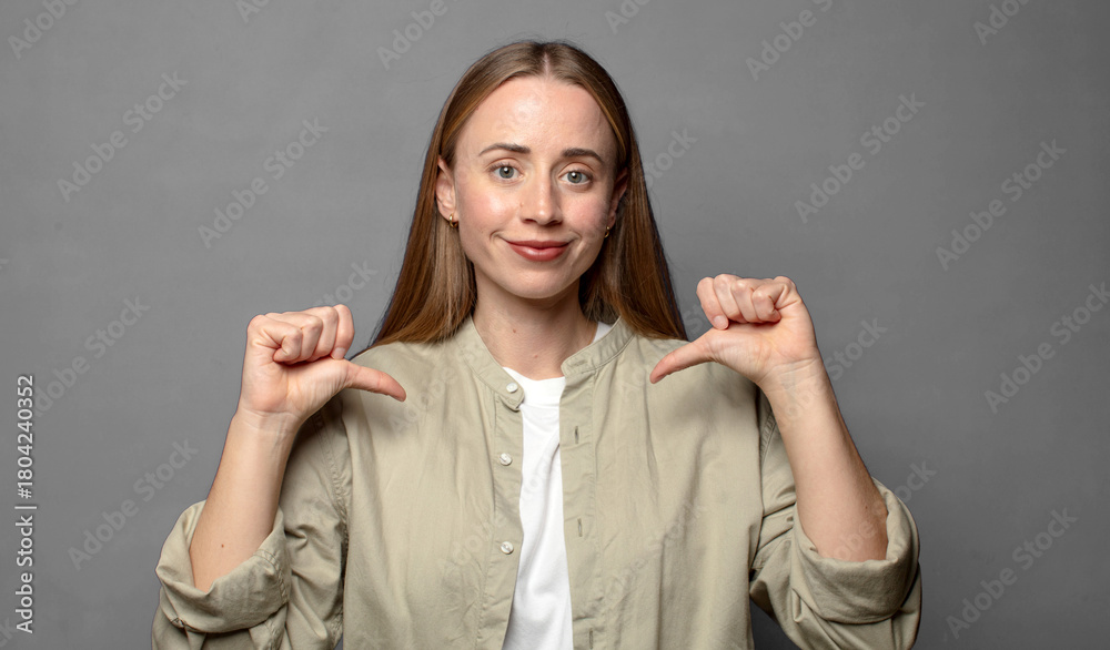 feeling proud, arrogant and confident, looking satisfied and successful, pointing to self