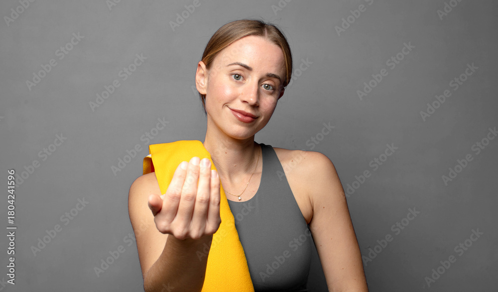 feeling happy, successful and confident, facing a challenge and saying bring it on! or welcoming you. fitness concept