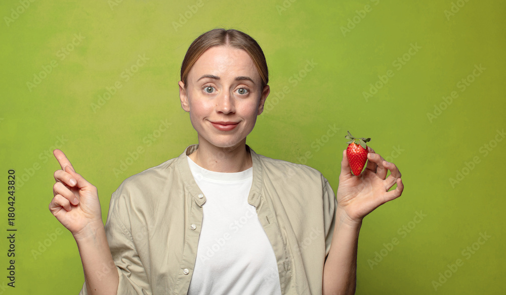 young adult blonde woman with a strawberry