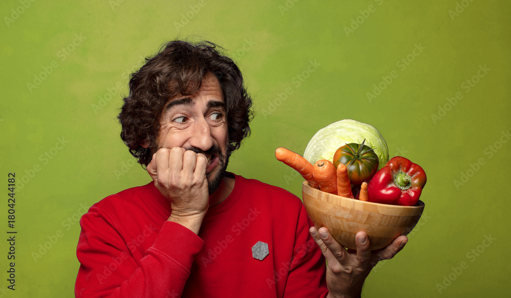 young adult bearded man with vegetables