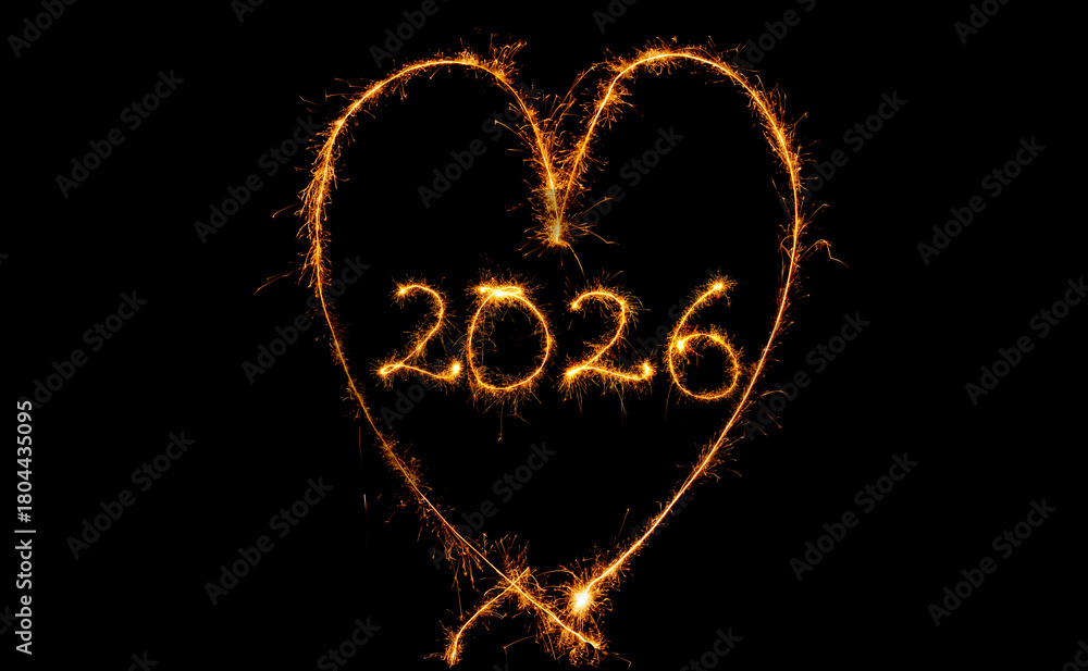 In ein brennendes Herz aus Wunderkerzen ist mit Wunderkerzen geschrieben, 2026.