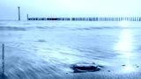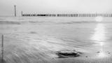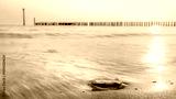 Motion blur Waves at the sea during sunset at Dutch coast of Zeeland