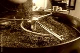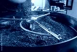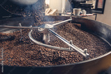 Aromatic coffee beans situating in modern equipment with grain chiller. Industry concept
