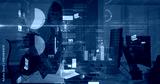 Collaborating two women in business attire analyzing laptop, monitor data and AR overlays in office