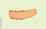 Make up cosmetic product eye shadow or bronzer or dark pressed powder neutral brown nude smudge light green isolated background