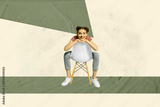 Trend pop collage of person stand sit chair on geometry figure over pastel background