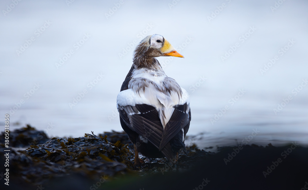 Spectacled Eider Somateria fischeri very rarely found in Europe in the Netherlands near the island of Texel.
