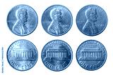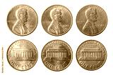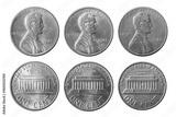 Isolated photo of 1 Lincoln memorial cent USA 1988 P, D and S coins on white background.