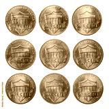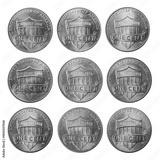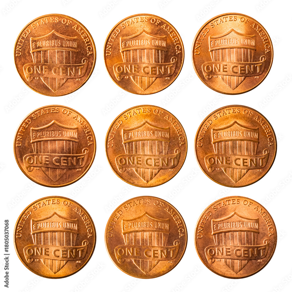 Isolated photo of 1 Lincoln shield cent USA coins reverse on white background.