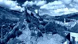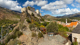 famous restored citadel and historical city of corte in corsica france on rock wide panorama. corse culture concept
