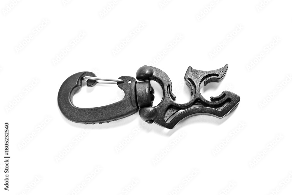 Ergonomic swivel carabiner for hose attachment with metal lock isolated on white background