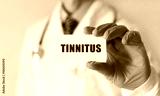 Doctor holding a card with text TINNITUS ,medical concept