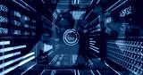 Leaning woman green headscarf, man dark shirt studying smartphone and laptop at cafe, AR overlay