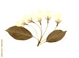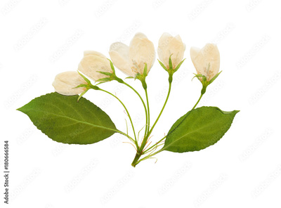 Pressed and dried white delicate transparent flower apple tree, isolated