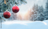 Merry christmas and happy new year greeting background with copy-space.Winter landscape with snow and christmas trees