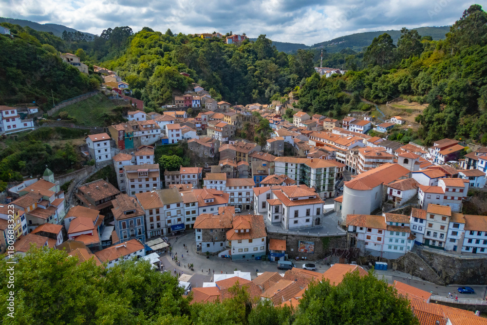 Red-tiled roofs of charming Cudillero, Asturias, Spain