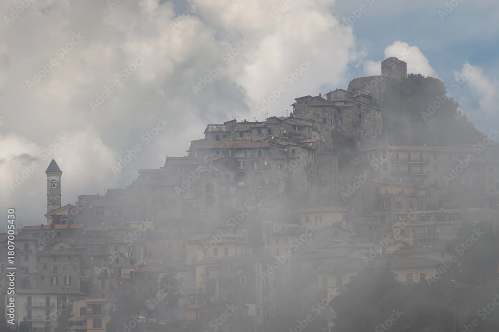 Veduta nella nebbia di Olevano Romano - Roma - Lazio - Italia