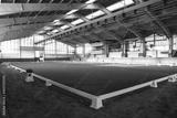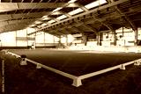 Covered arena building interior without people ready for equestrian training. Place to train horses