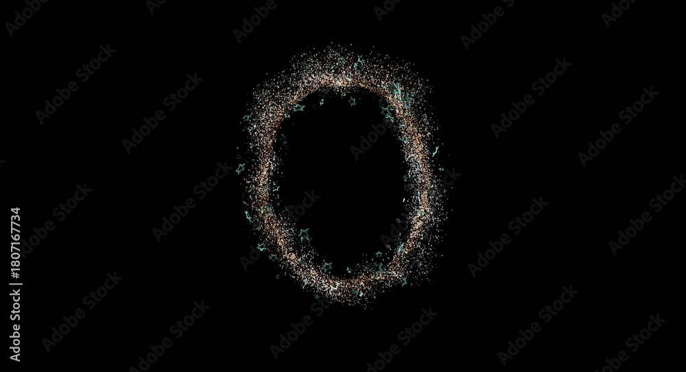 Abstract particle ring of stardust glowing on black background, suitable for design and creative purposes. Sparkling hal
