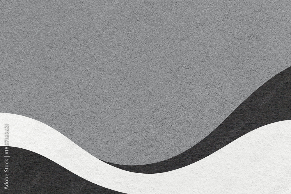 Textured dark gray paper background with black and white wavy lines and waves, copy space for banner, presentation