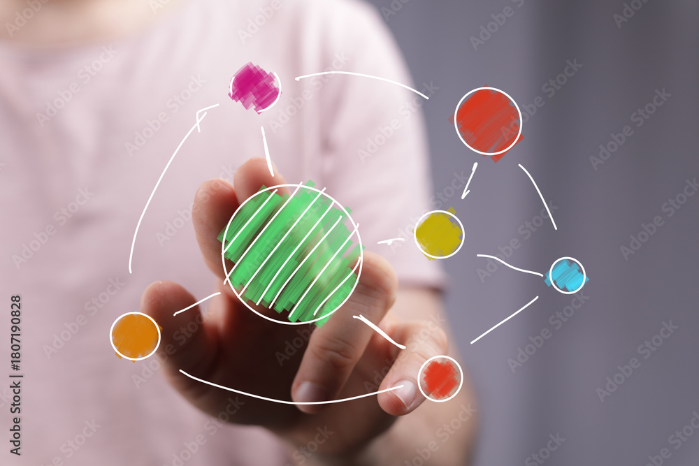 Abstract image of a hand interacting with a digital network. Ideal for technology, connection, and innovation concepts.