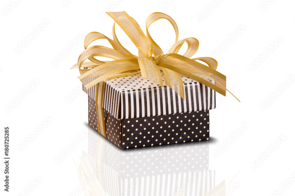 Gift box with golden lace in white background