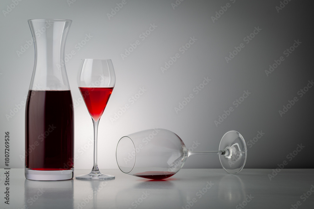 A wine glass filled with red wine. The wine glass stands tall, highlighting the rich taste of the red wine. An elegant glass, perfect for enjoying.glass lying down