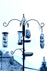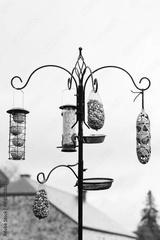 graines et nourriture pour oiseaux suspendues dans un jardin sous la pluie en automne