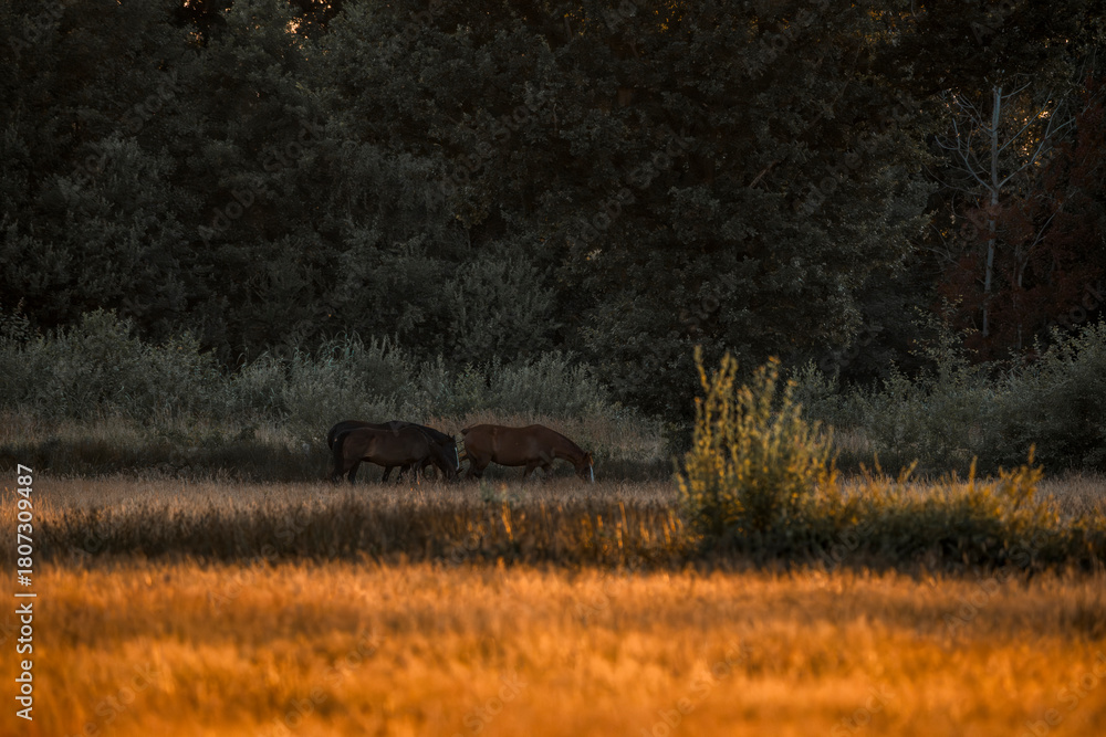 beautiful chestnut horse in dusk in the field pasture pretty outside equine photograph