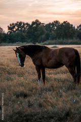 beautiful chestnut horse in dusk in the field pasture pretty outside equine photograph