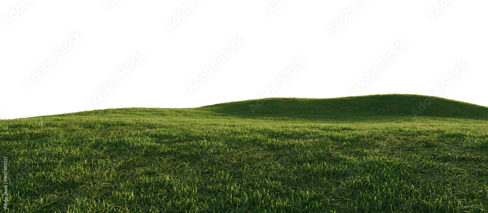 Hills with grass on a transparent background. 3D rendering.