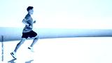 Running workout in a modern urban setting