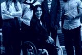 Diverse Team Portrait with Smiling Woman in Wheelchair at Office