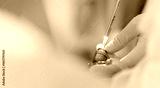 Close up of instrument for removal from fabric using hot thread, Laparoscopic surgery on prostate adenoma