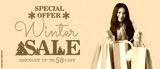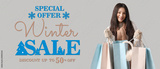 Beautiful young woman in warm clothes with shopping bags on grey background