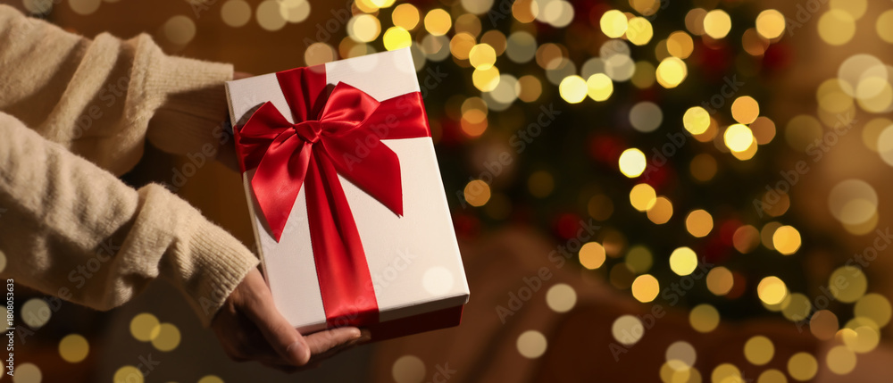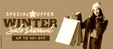 Beautiful young woman in warm clothes with shopping bags blowing kiss on brown background