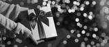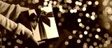 Female hands with beautiful gift box at home on Christmas eve, closeup