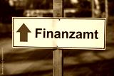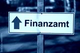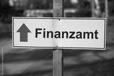 Schild mit Richtungspfeil und der deutschen Aufschrift Finanzamt