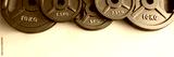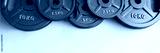 Web banner with iron weight plates on light background, versatile for health, bodybuilding, gym, exercise, crossfit, and wellness campaigns, with space for fitness text or promotional design.