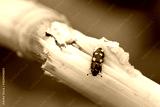Four-spotted Sap Beetle (Glischrochilus quadrisignatus) on a damaged maize plant.