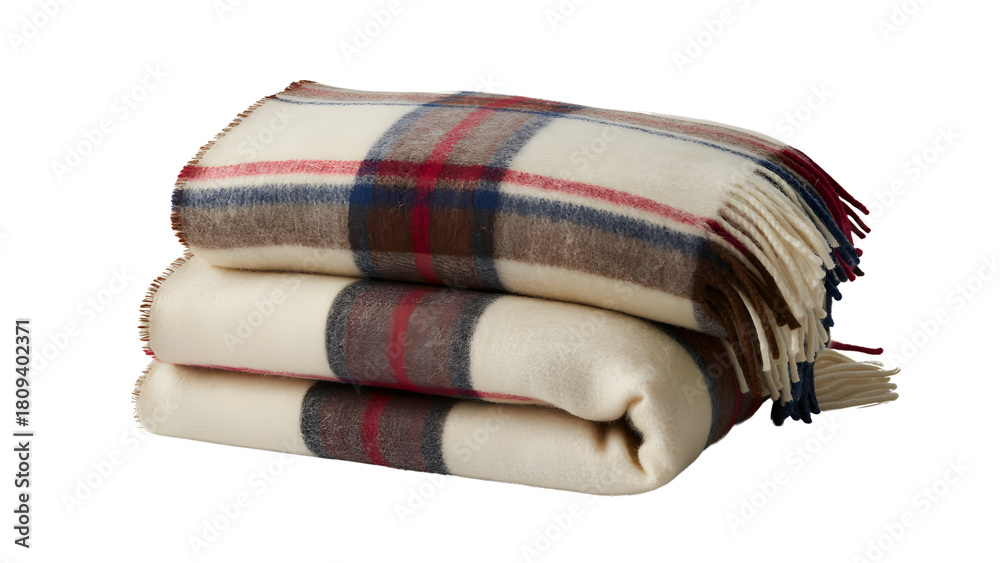 Folded wool blanket with a plaid pattern isolated on transparent background isolated on transparent background