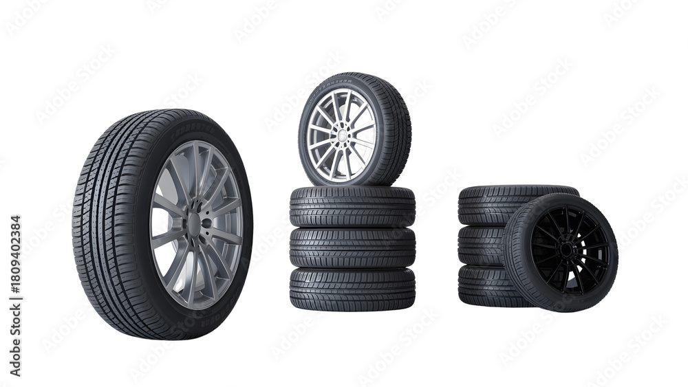 Stack of car tires isolated on transparent background for sale isolated on transparent background