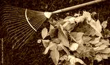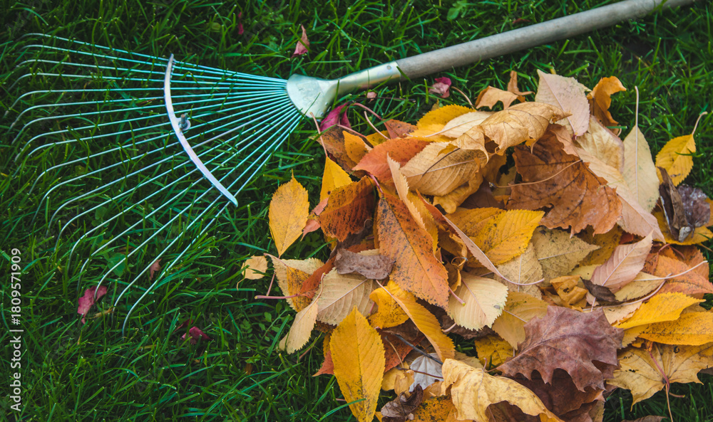 Cleaning the leaves in the autumn park. Selective focus.